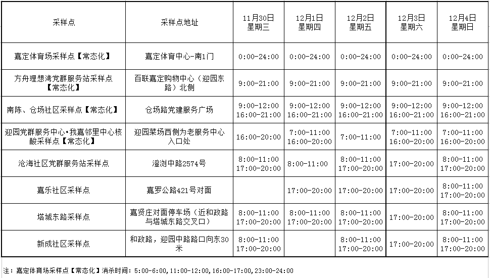 1.采样时段小区实行封闭管理,采样结束后即解除封闭,无法参与小区核酸筛查的居民,请及时前往街道常态化核酸采样点进行检测,当日开放的常态化核酸检测点位安排见附表。